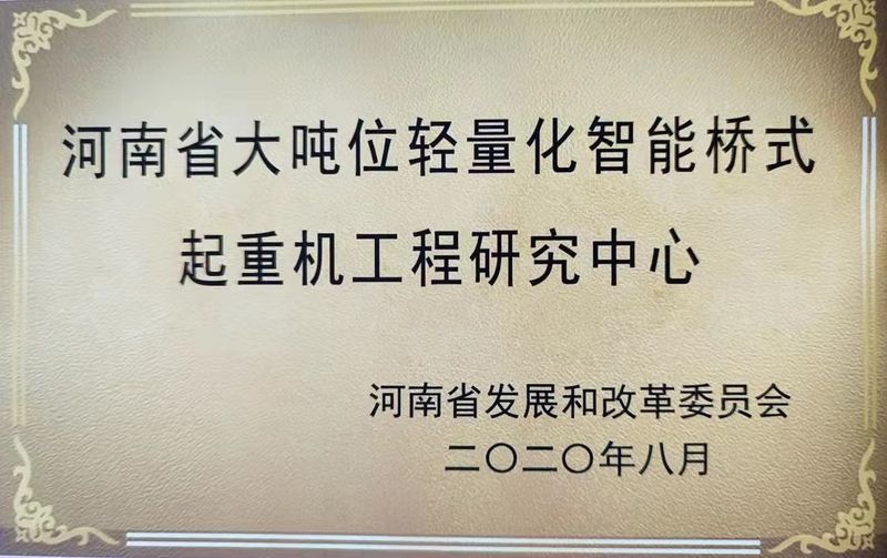 河南省大噸(dūn)位輕量化智能橋式起重機(jī)工程研究中心